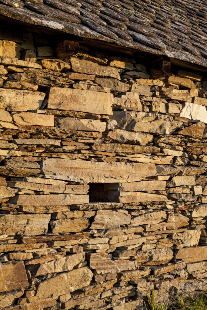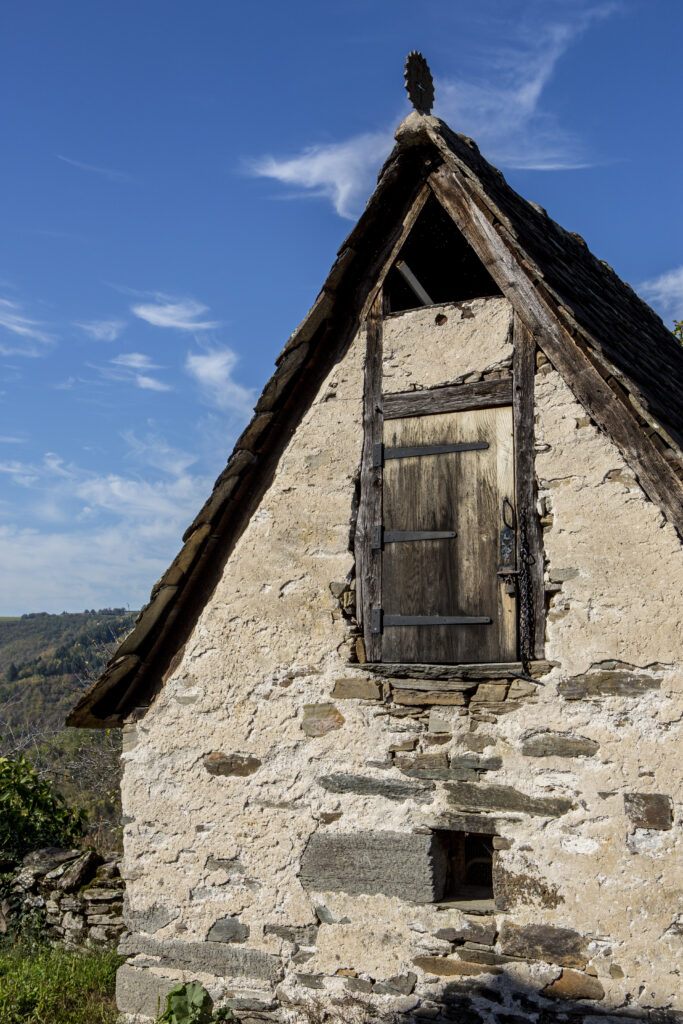 A Valon, les maisons du village, les granges, les fours à pain, les cabanes, les loges à cochons et les séchoirs à châtaignes : tout est bâti en pierre sèche – en schiste.