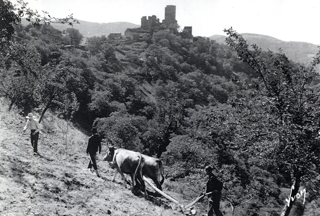 C’est l’un des rares endroits du nord Aveyron, bien au chaud dans les gorges de la Truyère, où a été possible la culture des arbres fruitiers et plus tard celle de la vigne.