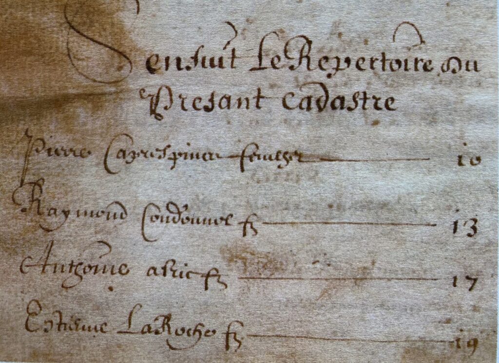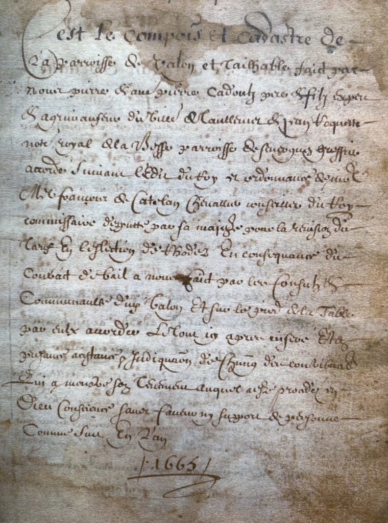 Le compois de 1665 donne la liste des habitants de Valon et du Prat, la nature de leurs biens et leur valeur ainsi que la somme dont ils devront s’acquitter.